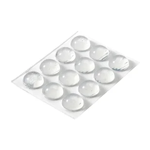 Odbojniki meblowe przeźroczyste 16x8mm - 12szt, firmy Hettich. Odbojnik meblowy umocowany na ścianie zabezpiecza jej powierzchnię i amortyzuje uderzenia drzwi. Posiada on miękką powłokę wykonaną z tworzywa odpornego na uszkodzenia mechaniczne. Materiał ten nie ulega niszczeniu przez długi czas użytkowania produktu. Przeźroczysty kolor sprawia, że z łatwością dopasujesz go do wnętrz.