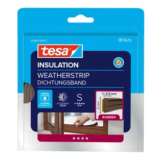 Tesa Uszczelka E-profile 9mm x 6m brązowa Samoprzylepna uszczelka gumowa o profilu E do okien i drzwi. Wyjątkowo odporna na warunki atmosferyczne. Łatwa do usunięcia. Po uszczelnieniu pomieszczenia zalecane jest jego regularne wietrzenie.