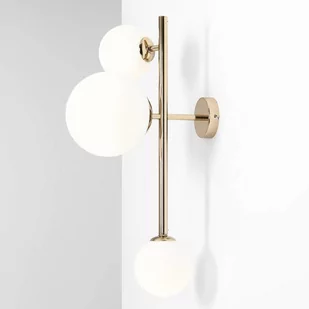 Nowoczesna lampa ścienna, mleczne satynowe klosze - kule umocowane do złotej konstrukcji. Niby nic, a jednak taka minimalistyczna kreacja oświetleniowa zawieszona w grupie z lampami z tej serii to idealna dekoracja salonu, jadalni, kuchni czy holu, ale też hotelu, pubu, restauracji w stylu nowoczesnym, minimalistycznym, vintage, skandynawskim oraz industrialnym Pięknie oświetli, ożywi i uatrakcyjni przestrzeń, przykuje uwagę każdego i zaspokoi gusta osób lubiących klasę, styl i elegancję. Źródło światła - żarówki 2x E14 o mocy max 40W, 1xE27 o mocy max 60W. BRAK ŻARÓWEK W ZESTAWIE Produkt objęty gwarancją - osoba prywatna - 2 lata, firma - 1 rok.