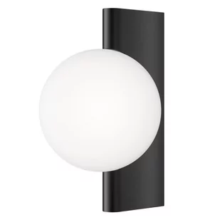Kinkiet 1 punktowy ze szklanym białym kloszem. Elementy metalowe wykończone w kolorze czarnym matowym.