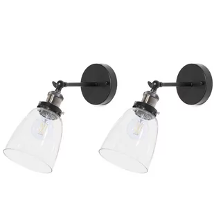 Nostalgiczne lampy ścienne wykonane z przezroczystego szkła w zestawie 2 sztuk. Smukłe kinkiety wykonane są z czarnego metalu z elementami w kolorze mosiądzu. Okrągłe i pięknie wygięte klosze z przezroczystego szkła zapewniają przyjemne światło. Dzięki swojemu rustykalnemu i nostalgicznemu urokowi, te kinkiety są ponadczasowym rozwiązaniem oświetleniowym, które można równie łatwo zintegrować z nowoczesną lub industrialną atmosferą, jak i z klasycznym wnętrzem lub stylem wiejskiego domu. Szczegóły: Typ: Kinkiety Styl: