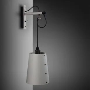 Hooked Wall large - lampa ścienna o indywidualnym wzornictwie z metalowym kloszem Charakterystyczny design sprawia, że lampa ścienna Hooked Wall large jest efektownym obiektem świetlnym w każdym pomieszczeniu. Z wyjątkiem kabla lampa ścienna jest wykonana w całości z metalu. Klosz i uchwyt ścienny są lakierowane proszkowo w kolorze; gniazdo, hak do zawieszenia klosza na uchwycie, jak również widoczne śruby, którymi mocuje się element ścienny i zamyka klosz, wykonane są z metalu kontrastującego kolorystycznie. Przełącznik na uchwycie ściennym umożliwia włączanie i wyłączanie bezpośrednio przy lampie, dlatego duży kinkiet Hooked Wall można również bardzo dobrze wykorzystać na ścianie obok łóżka, zastępując lampkę nocną. Duża lampa ścienna Hooked Wall została wyprodukowana przez firmę Buster Punch.