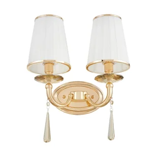 FABIONE W2 elegancki kinkiet złoty biały abażur zawieszka kryształowa 2xE14