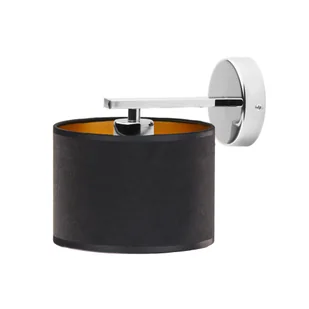 Chromowany kinkiet do salonu LUANDA VELUR - prosta forma i funkcjonalność Minimalistyczna lampa ścienna LUANDA VELUR zachwyca swoim wyjątkowym stylem i kształtem. Prosta forma stelaża wraz z klasycznym abażurem sprawiają, że nowoczesny kinkiet będzie doskonale pasował do wnętrz urządzonych w różnych stylach. Optymalne wymiary tego designerskiego kinkietu ściennego sprawdzą się nawet w pomieszczeniach o niewielkim metrażu. LUANDA mierzy 21 cm wysokości i 22 cm szerokości. Wyjątkowego uroku nadaje oprawie welurowy abażur o średnicy 17,5 cm i wysokości 12 cm dostępny w kilku modnych kolorach.