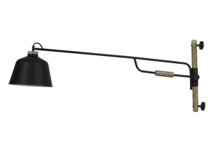 Kinkiet w stylu Loftowym to nie tylko punktowe oświetlenie, ale również instalacja, która ozdobi ścianę w sypialni lub salonie. Metalowy czarny klosz został zainstalowany na czarnej, metalowej długiej ramie. Drewniany motyw na górze klosza oraz na elemencie przylegającym do ściany nawiązuje do natury. Przewód lampy został ukryty w dolnym wsporniku lampy, dzięki czemu nie będzie widoczny podczas zamontowania kinkietu. Wysokość 45 cmSzerokość 25 cmGłębokość 120 cm