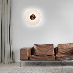 Lampa ścienna LED Vitrum z soczewkowym szklanym kloszem - ściemniana zewnętrznie Lampa ścienna Vitrum to nowoczesne źródło światła do salonów i pokoi dziennych. Za okrągłą aluminiową osłoną zintegrowano płytkę LED o barwie ciepłej bieli, z której światło emitowane jest od tyłu i zapewnia pośrednie oświetlenie całej ściany. W zestawie znajduje się również szklany klosz w kształcie płaskiej soczewki. W razie potrzeby jasność można regulować zewnętrznie za pomocą ściemnianego ściemniacza.