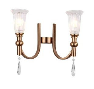 RIONELLA W2 kinkiet mosiężny z kryształową zawieszką klosz szklany kielich 2xE27