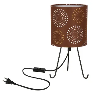 podstawa stalowa, abażur tkanina+PCV Kolor: czarny, brązowy Ilość potrzebnych żarówek: 1 Rodzaj żarówki: E14 Wymiary: długość/wysokość 30 cm, szerokość 14 cm, głębokość 14 cm Zobacz także inne lampy stołowe z naszej oferty klikając w powyższy link.