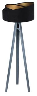Styl: nowoczesny, skandynawski Materiał: tworzywo PCV; wysokojakościowa, aksamitna tkanina welurowa; naturalne drewno sosnowe Kolor: czarny (wnętrze klosza złote), podstawa - antracytowy Źródło światła: E27, max. 60W Wymiary: średnica abażura - 50 cm, wysokość abażura - 23 cm, wysokość całkowita - 146 cm Rozstaw nóg: