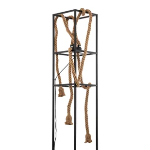 Kątowa, ramowa designerska lampa podłogowa Vlados z żelaza z trzema konopnymi linami Lampa podłogowa Vlados bez wątpienia wyróżnia się w salonie swoim niezwykłym i niepowtarzalnym designem. Składa się ona z pewnego rodzaju klatki lub ramy wykonanej z czarnej stali i zorientowanej pionowo. Liny konopne są przymocowane od gniazda zasilania do opraw, tworząc uderzający kontrast z metalową ramą o czarnej powierzchni. Można je dowolnie owijać wokół ramy, co oczywiście pozwala również na stworzenie bardziej zindywidualizowanego wyglądu. Same żarówki również odgrywają kluczową rolę w określaniu wyglądu i dlatego powinny być dobrane tak, aby pasowały i najlepiej miały szklaną bańkę, tak jak w przypadku klasycznych żarówek tradycyjnych, które są obecnie w dużej mierze zastępowane przez żarówki LED, ponieważ wyglądają podobnie, ale są znacznie bardziej wydajne.