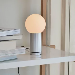 Lampa stołowa LED Turn on z kulą ze szkła opalowego, intuicyjna obsługa Lampa stołowa LED Turn on to urządzenie wykonane z aluminium i szkła opalowego. W przypadku tej oprawy nazwa mówi wszystko, ponieważ można ją obsługiwać intuicyjnie, obracając podstawę oprawy. Podstawę lampy stanowi fasetowany walec z anodowanego aluminium, który poprzez obrót pełni funkcję przełącznika i ściemniacza. W ten sposób włącza się światło i zmienia się również jego jasność; im dalej w prawo, tym światło staje się jaśniejsze. Kula z wbudowanymi diodami LED wykonana jest z opalowego szkła, przez które światło rozprasza się bez olśnienia i bardzo jednorodnie do otoczenia.