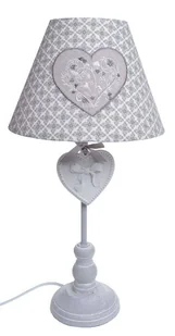 Lampa drewniana biało-szara z haftowanym sercem Wymiary: 22X22X43CM Materiał: drewno, metal Kolor lampy: szary Kolor abażura: biało-szary Żarówka :E27, max 40W