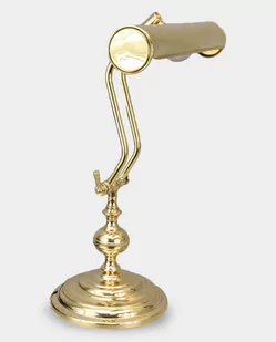Lampa Gabinetowa Bankierska Mosiężna Złota Stylowa lampa gabinetowa z podłużnym kloszem zwana notarialną lub “bankierką”. Podłużny klosz nawiązuje stylistyką do lamp galeriowych, z którymi tworzy jedność stylistyczną. Solidna i ciężka wykonana z mosiądzu polerowanego. Wymiary 26 cm x 45 cm Waga 4 kg Pomysł na prezent Rękodzieło Możliwość Dodania Grawerowanej Dedykacji