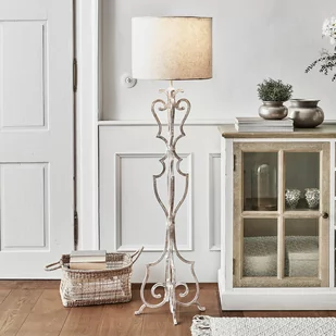 To wyjątkowe dzieło sztuki w stylu vintage – prawdziwa atrakcja w luksusowym, francuskim stylu rustykalnym. Wysokiej jakości lampa stojąca urzeka pięknie zaprojektowaną nogą z żelaza. Ozdobiono ją mocnym antycznym wykończeniem z autentyczną patyną. Pasujący do całości klosz wykonano z pięknego, czystego lnu. To idealny dodatek dla każdego, kto kocha styl shabby chic i design rodem ze starych, dobrych czasów.