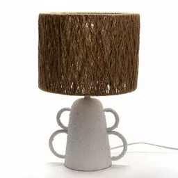 Lampka Nocna Lampa Stołowa Juta Boho Retro Biała Abażur Beżowy 20CM Natural
