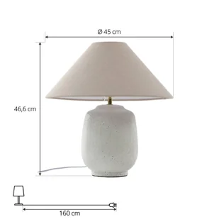 Lampa stołowa Thalorin z białą ceramiczną podstawą i szarym tekstylnym kloszem Ta lampa stołowa nie tylko zapewnia piękne światło, ale również wygląda gustownie. Dzięki wyjątkowemu designowi lampa stołowa skutecznie wtapia się we wnętrze i tworzy przyjemną atmosferę. Wszystkie zalety i cechy szczególne, które charakteryzują markę Lucande, łączą się w tej lampie. Lampa stołowa może być łatwo obsługiwana za pomocą przełącznika i jest w kolorze szarym. Jest wyposażona w oprawę E27.