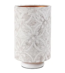 Lampa stołowa MIX-D-W 03 z abażurem z tkaniny strukturalnej Lampa stołowa MIX-D-W 03 to propozycja skierowana do osób szukających niedużej lampki, która zapewni nam dodatkowe źródło światła w salonie, w sypialni lub w biurze. Abażur lampy w kształcie tuby wykonany jest z tkaniny strukturalnej posiadającej kolorowy nadruk. Wnętrze lampy jest z PCV o miedzianej barwie. Zastosowana tkanina wyróżnia się dużą odpornością na promieniowanie UV, dzięki czemu materiał nie odbarwia się nawet po wielu latach użytkowania. Podstawa lampki zrobiona jest z metalu o białej barwie.