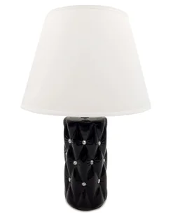 Lampa Stołowa Nocna Z Kryształkami Czarna Z Białym Kloszem Glamour 44 Cm