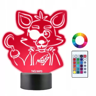 Lampka Nocna 3D LED Fnaf Foxy Prezent To doskonały wybór na dekorację pokoju . Może służyć jako lampa stołowa i jako prezent na urodziny, Święta, upominki imprezowe i dekoracje do pokoju. Jej konstrukcja jest bardzo delikatna. Ciepłe światło nocnej lampki rozjaśni ciemną noc. Lampka posiada tryb świecenia w siedmiu kolorach na przemian jak również jest możliwość stałego ustawienia wybranego koloru.