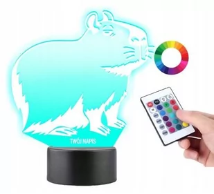 LAMPKA NOCNA KAPIBARA CAPYBARA 16 LED 3D NA BIURKO LAMPKA LED KAPIBARA Ta niezwykła lampka została wykonana z najwyższej jakości materiałów, co gwarantuje nie tylko trwałość, ale także niesamowitą estetykę. Lampka jest podświetlana za pomocą specjalnych diod LED, które emitują miękkie, przyjemne dla oka światło, dzięki czemu stworzą idealny klimat do relaksu i wyciszenia. To jednak nie wszystko - lampka jest również wyposażona w specjalny pilot, który umożliwia zmianę kolorów podświetlenia. Możesz wybrać spośród wielu różnych odcieni, takich jak między innymi czerwony, zielony, niebieski, fioletowy czy biały, aby dopasować lampkę do swojego nastroju lub otoczenia. Lampka Kapibara LED jest idealnym prezentem dla dzieci, nastolatków oraz wszystkich miłośników tej bajki.