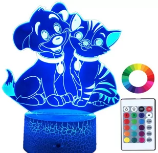???? Lampka Nocna Kotek i Piesek ???? z Grawerem na Prezent To doskonały wybór na dekorację pokoju . Może służyć jako lampa stołowa, prezent na urodziny, Święta, upominek imprezowy i dekoracja do pokoju. Jej konstrukcja jest bardzo delikatna. Ciepłe światło nocnej lampki rozjaśni ciemną noc. Lampka posiada tryb świecenia w siedmiu kolorach na przemian jak również jest możliwość stałego ustawienia wybranego koloru.