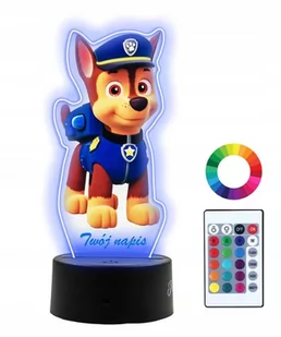 Lampka Nocna z Nadrukiem 3D LED Psi Patrol Chase Imię To doskonały wybór na dekorację pokoju. Może służyć jako lampa stołowa, prezent na urodziny, Święta, upominek imprezowy i dekoracja do pokoju. Jej konstrukcja jest bardzo delikatna. Ciepłe światło nocnej lampki rozjaśni ciemną noc. Lampka posiada tryb świecenia w siedmiu kolorach na przemian jak również jest możliwość stałego ustawienia wybranego koloru.