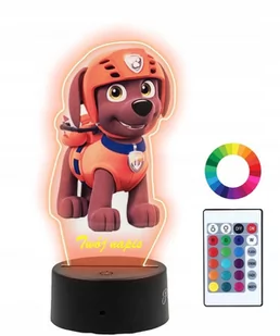 Lampka Nocna z Nadrukiem 3D LED Psi Patrol Zuma Imię To doskonały wybór na dekorację pokoju. Może służyć jako lampa stołowa, prezent na urodziny, Święta, upominek imprezowy i dekoracja do pokoju. Jej konstrukcja jest bardzo delikatna. Ciepłe światło nocnej lampki rozjaśni ciemną noc. Lampka posiada tryb świecenia w siedmiu kolorach na przemian jak również jest możliwość stałego ustawienia wybranego koloru.