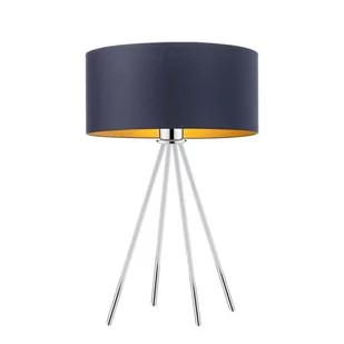 · Kraj pochodzenia i cechy produktu: produkt polski fabrycznie nowy · Kolor abażuru: granatowy ze złotym wnętrzem (matowy) · Kolor stelaża: chrom · Moc: 60W · Napięcie: