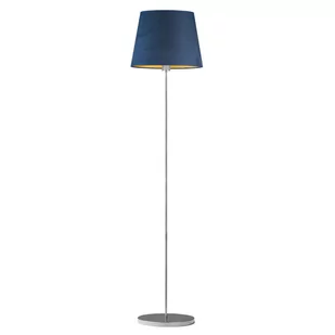 VASTO to jedna z wyższych lamp podłogowych, ma aż 162,5 cm wysokości, stąd też dedykowana jest do większych metrażowo pomieszczeń. · Kraj pochodzenia i cechy produktu: produkt polski fabrycznie nowy · Kolor abażuru: granatowy ze złotym wnętrzem · Kolor stelaża: srebrny · Moc: