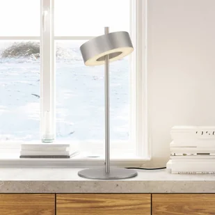 Nowoczesna lampa stołowa LED Q-Rotate z odchylanym kloszem - inteligentna i sterowana pilotem Lampa stołowa LED Q-Rotate jest zarówno funkcjonalnie, jak i wizualnie zgodna z duchem czasu. Moduł LED znajduje się wewnątrz aluminiowego klosza w kształcie pierścienia, który jest zamontowany obrotowo w pobliżu górnej części smukłego, pionowego pręta ramy. Światło emitowane jest przez satynowane osłony w górnej i dolnej części pierścienia, a do przełączania, ściemniania i regulacji temperatury światła dołączony jest odpowiedni pilot. Oprócz swobodnej regulacji światła, oferuje on również wstępnie skonfigurowane opcje, dzięki czemu idealne oświetlenie jest wygodnie dostępne w niemal każdej sytuacji. Alternatywnie lampę stołową Q-Smart-Home można bezprzewodowo zintegrować z systemami inteligentnego domu opartymi na ZigBee (wymagany mostek), aby sterować nią za pomocą aplikacji lub poleceń głosowych, w zależności od konfiguracji.