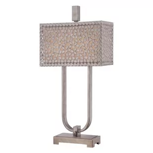 Nowoczesna lampa stołowa na pięknej nodze, o klasycznym, bardzo dekoracyjnym wyglądzie, na dwie żarówki. Abażur prostokątny, z zewnątrz jest ażurowy, wypełniony metalowymi elementami przypominającymi konfetti, a wewnątrz płócienny w kolorze przełamanej bieli, z oryginalnymi detalami ozdobnymi. Całość elegancka, pasuje do salonu, idealna do sypialni i innych przestrzeni przeznaczonych do relaksu, pięknie zmiękcza i rozprasza światło. Na stół, stolik kawowy, na stoliki boczne przy kanapie czy fotelu, na szafki i komody w przedpokoju, salonie, na parapet, jako lampki nocne przy łóżku we wnętrzach w stylu klasycznym, nowojorskim, skandynawskim, vintage i retro. Można stworzyć niezapomniany zestaw oświetleniowy z innymi lampami z tej samej kolekcji.