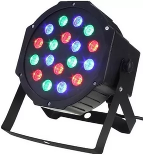 Światła dyskotekowe - kolorofon 18 diod, 3 kolory diod RGB ze stelażem. Reflektor wyposażony został w osiemnaście diod RGB o mocy 1W każda. Wszystkie z nich zapewniają mocne światło o dalekim zasięgu! Dzięki szerokiej palecie kolorów (RGB) świetnie sprawdzi się jako oświetlenie dekoracyjne dla DJ-ów, zespołów muzycznych, na prywatce, weselu a nawet do klubu!