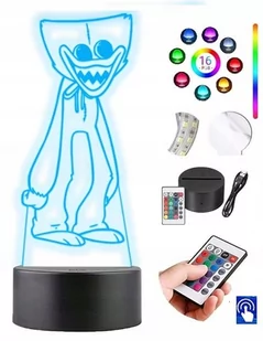 Projektem może być: grafika, tekst, data, adresat, odbiorca, logotyp - cokolwiek zapragniesz. Lampka led to praktyczny i oryginalny pomysł na prezent jak również doskonała reklama dla Twojej firmy. Jeżeli masz swój oryginalny pomysł na projekt, podziel się nim z nami, chętnie go dla Ciebie przygotujemy. Opis produktu firmy Plexido Lampka nocna LED Huggy Wuggy Zestaw zawiera: