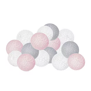 ciepły biały kolor kul: różowy, biały, szary materiał: bawełna ilość lampek:
