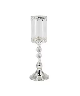Świecznik sprawdzi się jako migoczący dodatek na stole podczas rodzinnych uroczystości. Wykonanie Świecznik został wykonany z metalu w srebrnym kolorze oraz szkła. Idealny do wnętrz Świecznik idealnie dopełni aranżację wnętrz urządzonych w stylu nowojorskim czy nowoczesnym. Parametry Kolor: srebrny Materiał: