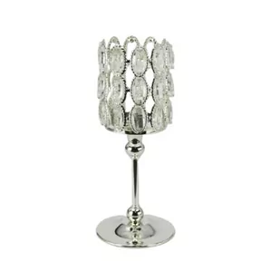 Wygląd Świecznik składa się z metalowej srebrnej podstawy i obudowy składającej się z kryształków szkła. Całość wygląda niezwykle elegancko. Świecznik idealnie dopełni aranżacje wnętrz nowoczesnych w stylu nowojorskim. Sprawdzi się jako dodatek na stół w jadalni czy na komodę w salonie. Stworzy we wnętrzu przytulną atmosferę ocieplając wnętrze migoczącym blaskiem świec.