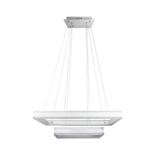 Lampa dekoracyjna zwieszana 115W V-TAC Soft LED VT-101-2-W t o lampa dekoracyjna LED o mocy 115W. W skład kompletu wchodzą dwa obręcze o wymiarach 60x30 i 40x20 cm koloru białego z mlecznym, akrylowym kloszem. Dzięki płynnej regulacji wysokości położenia obręczy możliwa jest dowolna konfiguracja ustawienia pierścieni. W zestawie dołączone są stalowe linki montażowe oraz rozeta na sufit z ukrytymi zasilaczami. Całkowita wysokość lampy wynosi 120 cm i może być zmniejszona do 40 cm.