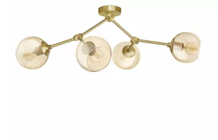 Mosiężna lampa sufitowa z 4 kloszami kulami.