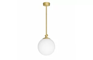 Złota lampa wisząca z kloszem kulą o średnicy 20cm.