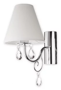 Kinkiet Velio to piękne połączenie klasycznego abażuru z pięknie mieniącymi sie kryształkami i nowoczesnym chromem.
