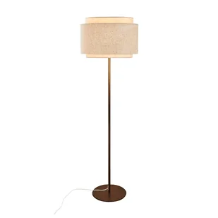 Stylowa lampa stojąca Takai z lnianym kloszem i mosiężną podstawą