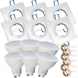 Zestaw 6x Led GU10 5W Zimna Oprawa halogen Szkło Kwadrat