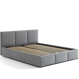 Bardzo eleganckie, nowoczesne łóżko tapicerowane. Obite stylowym, miękkim welurem o szarej barwie. Wykonane z wysokiej jakości materiałów: podstawą konstrukcji jest mocna, metalowa rama otwierana za pomocą podnośnika gazowego. Stelaż stanowią listwy sprężynujące wykonane z drzewa topolowego.
