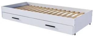Dodatkowe miejsce do spania – wysuwany stelaż pozwala stworzyć wygodne łóżko w kilka sekund. Zintegrowana półka – praktyczne rozwiązanie do przechowywania książek, pościeli czy drobiazgów. Uniwersalny design – harmonijnie komponuje się z bazą łóżka i pozostałymi modułami z kolekcji Mizz. Solidna konstrukcja – odporna na uszkodzenia, zaprojektowana z myślą o codziennym użytkowaniu. Materiały, które podnoszą komfort użytkowania :
