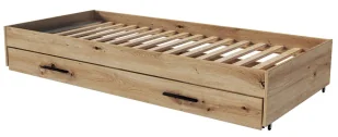 Dodatkowe miejsce do spania – wysuwany stelaż pozwala stworzyć wygodne łóżko w kilka sekund. Zintegrowana półka – praktyczne rozwiązanie do przechowywania książek, pościeli czy drobiazgów. Uniwersalny design – harmonijnie komponuje się z bazą łóżka i pozostałymi modułami z kolekcji Mizz. Solidna konstrukcja – odporna na uszkodzenia, zaprojektowana z myślą o codziennym użytkowaniu. Materiały, które podnoszą komfort użytkowania :