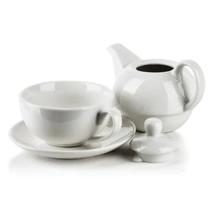 Dzbanek z filiżanką Basic Tea for one o pojemności 350 ml + 250 ml wykonany z białej porcelany. Wymiary: długość 15,5 cm, szerokość 15,5 cm, wysokość 14,5 cm. Idealny zestaw do parzenia herbaty, lekki i trwały, waga netto 0,84 kg.