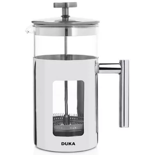 Zaparzacz typu french press DUKA BARISTA docenią wszyscy miłośnicy aromatycznej kawy, którzy cenią sobie stylowe, praktyczne rozwiązania. Zachwycający prostą formą i wyposażony w elegancką pokrywę z tłokiem i sitkiem do odcedzania fusów, zaparzacz DUKA BARISTA sprawdzi się idealnie w Twojej kuchni. Ścianki pojemnika zostały stworzone z odpornego na zarysowania i wysokie temperatury szkła borokrzemowego.