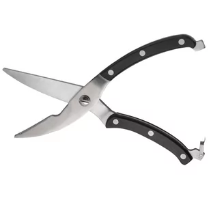 ZNAKOMITY DODATEK DO KUCHNIPraktyczne i eleganckie nożyce do drobiu, które przydają się w kuchni, restauracji, karczmie, masarni czy podczas rodzinnego grilla, przyjęcia weselnego, urodzin lub imprezy z przyjaciółmi. Solidne wykonanie nożyc umożliwia proste przygotowanie ulubionych mięs oraz bezpieczne przyrządzanie potraw, co jest istotne w przypadku używania ostrych narzędzi i kuchennej, często chaotycznej krzątaniny. Nożyce są akcesorium kuchennym, dzięki któremu pokrojenie mięsa nie sprawia wysiłku. BEZPIECZEŃSTWO I WYGODA Produkt jest bezpieczny - dzięki mechanizmowi blokującemu rączki zmniejsza się ryzyko, że nożyce wyrządzą krzywdę czy zranią posiadacza lub dzieci. Blokada w postaci klamry zabezpiecza przed przypadkowym otworzeniem i ewentualnymi wypadkami w kuchni, takimi jak rozcięcia, zranienia, przecięcia.
