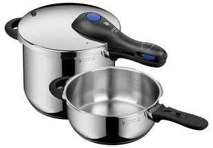 Szybkowar WMF Perfect Plus 2w1 (3 l + 6,5 l) to niezawodny zestaw do szybkiego i energooszczędnego gotowania. Solidne wykonanie WMF gwarantuje trwałość, a różne pojemności pozwalają dostosować przygotowanie potraw — idealny do codziennych i rodzinnych posiłków.