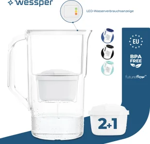 Komponenty niezawierające bisfenolu A (BPA)Przetestowany produktWykonany z wysokiej jakości tworzywa sztucznego dzbanek filtrujący wodę D1 SOLID FutureFlow™ jest wolny od szkodliwego BPA (bisfenolu A) dzięki zastosowaniu materiałów i produktów dopuszczonych do kontaktu z żywnością. Twoja dobra wodaDzbanek Wessper D1 SOLIDFutureFlow™, wyposażony w filtr aquamax, zapewnia czystą i smaczną wodę dzięki mieszance filtrującej składającej się z impregnowanego srebrem węgla aktywnego i żywicy jonowymiennej. Moc w każdym gramieFiltr Wessper aquamax STANDARDto idealny wybór dla każdego, kto chce filtrować wodę najwyższej jakościdzięki imponującej zawartości mieszanki filtracyjnej wynoszącej aż 95 gramów. Wysoka zawartość mieszanki filtracyjnej gwarantuje skuteczną filtrację i długotrwałą ochronę przed niepożądanymi substancjami w wodzie. Filtr Wessper aquamax: